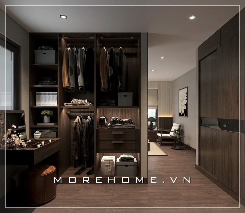 Mẫu tủ áo gỗ hiện đại không cánh mang lại sự tiện nghi cho gia chủ trong quá trình sử dụng