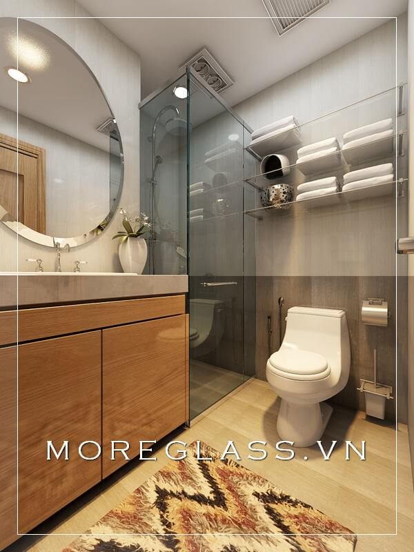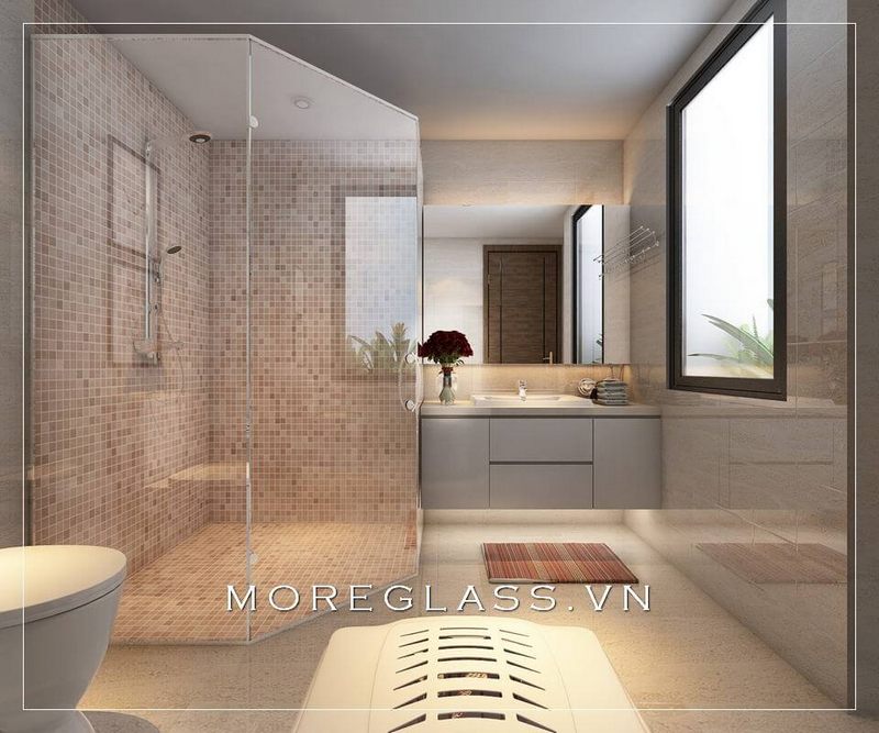 Mẫu thiết kế phòng tắm hiện đại với nội thất và thiết bị vệ sinh cao cấp, nhỏ gọn sẽ giúp giảm thiểu diện tích không gian của phòng.