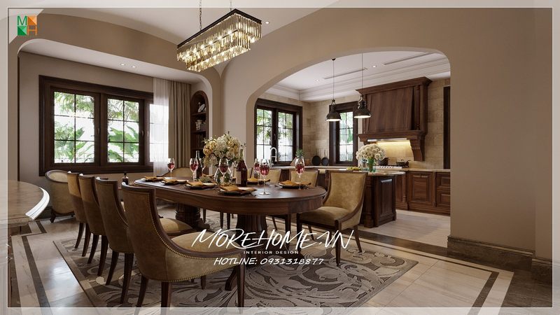 Morehome đã thiết kế và thi công một công trình nội thất đồ gỗ tân cổ điển đẹp bằng gỗ tự nhiên.